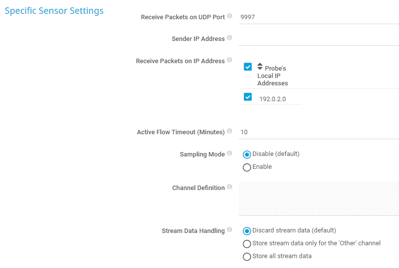 This sensor requires that the IPFIX export is enabled on the target system. The target system must send the flow data stream to the IP address of the probe system.