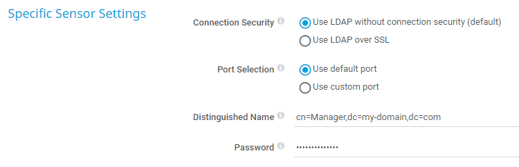 i_round_redIf you select Use LDAP over SSL, you need to enter a DNS name in the settings of the parent device. The sensor does not work with an IP address.