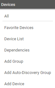 Click to open the Libraries list where you can view or add custom device tree views of your network status and monitoring data. Hover over Libraries to show other options.