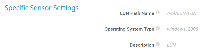 This sensor requires ONTAP as of version 9.6. If you want to use NetApp cDOT as of version 8.3 or ONTAP from version 9.0 to version 9.5, use the NetApp LUN sensor.