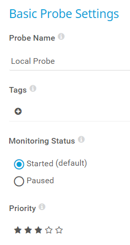 Select a priority for the probe. This setting determines the position of the probe in lists. The highest priority is at the top of a list. You can choose from the lowest priority () to the highest priority ().